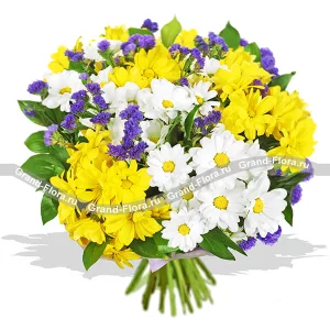 С любовью и нежностью - букет из кустовых хризантем, роз и альстромерий