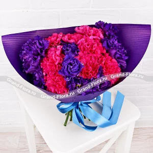Звездная ночь - букет из фиолетовых хризантем и гвоздик