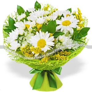 Улыбка весны – букет с кустовыми розами и хризантемами