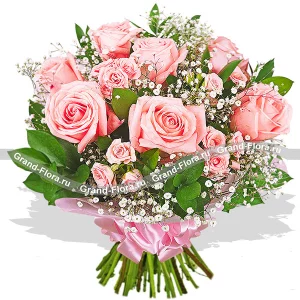 Аромат нежности – букет из белых и розовых роз (50-60 см)
