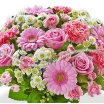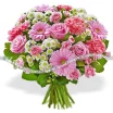 Чарующее сочетание благородных роз, выразительных гербер, нежных гвоздик розового оттенка и белых ромашковых хризантем подойдет для вручения не только отдельному человеку, но и паре. Шикарный букет подчеркнет значимость даты – свадьбы, дня рождения, юбилея.