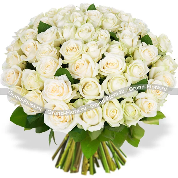 Роза белая 70 см - 51 шт., лента.