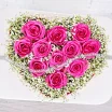 11 роз (на фото): роза розовая - 11 шт., гипсофила, оазис сердце малое. Примерный размер: 25Х25 см.