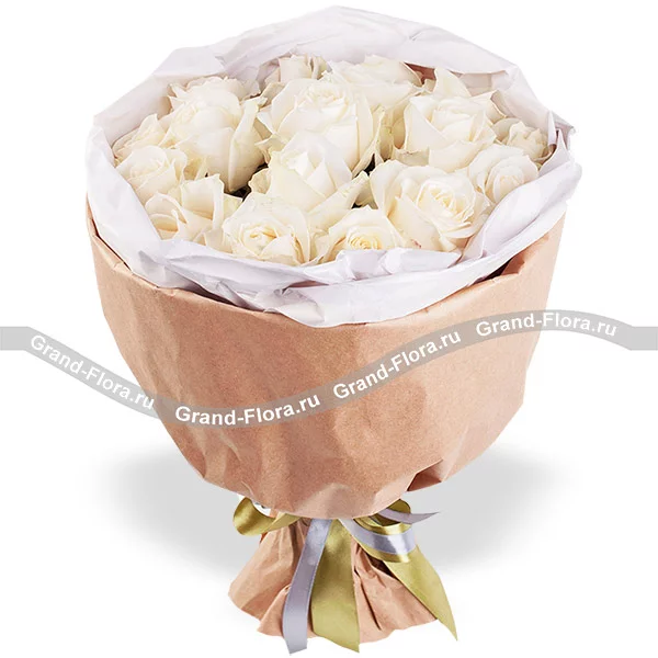 25 роз: роза белая - 25 шт., упаковка, лента.