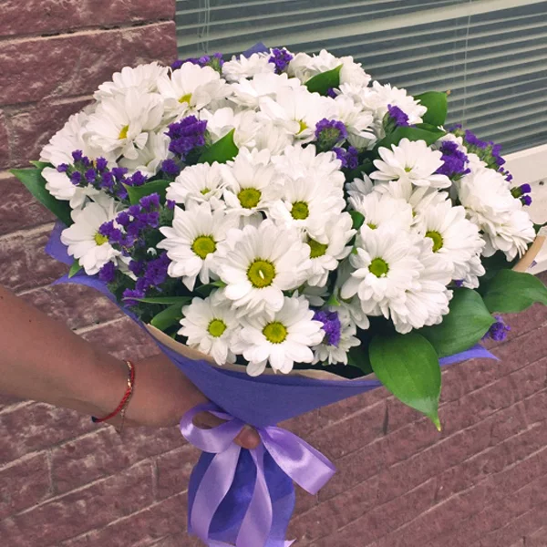 Михаил / г. Уфа / 01.05.2022Оценка букета:Искал букет с ромашками, нигде не мог найти. Когда позвонил в службу, мне пояснили, что в это время года ромашка не поступает в магазины, но кустовые хризантемы ничем не отличаются от ромашки. Выбрал этот букет в люксовом варианте, смотрится очень достойно. Рекомендую.