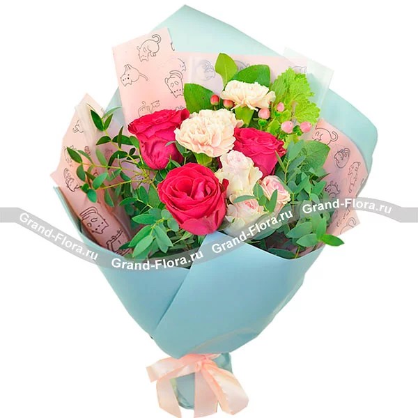 Потрясающе красивый букет! Состав идеально сбалансирован: красные и розовые розы создают контраст, который подчеркивается розовой гвоздикой. Ягодный декор и зелень идеально дополнили букет. Доставлен вовремя, цветы свежие.