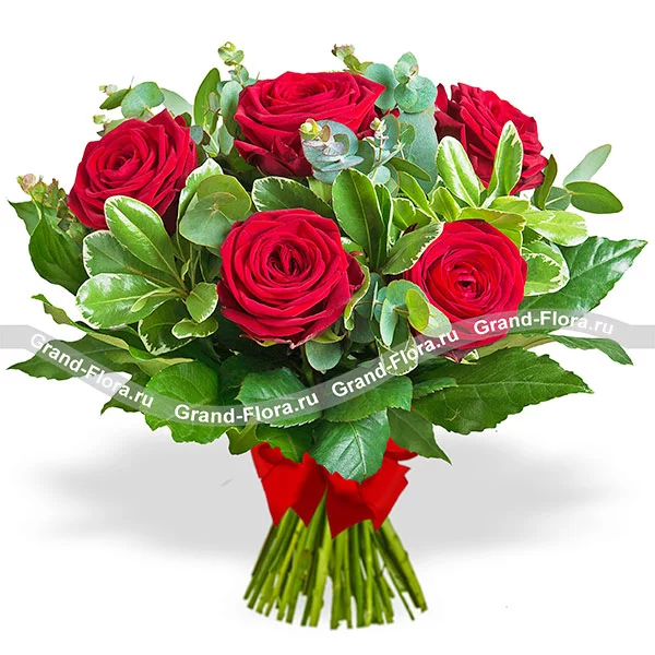 Дорогому человеку - букет из красных роз с зеленью! Акция 9 роз по цене 7!