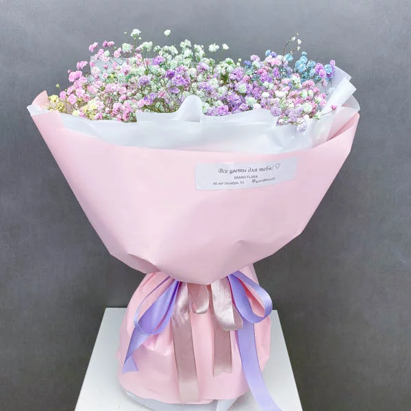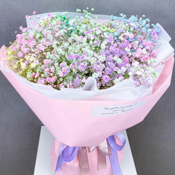 Невероятно красочный букет! Гипсофила радует глаз своей яркостью и разнообразием цветов. Доставили вовремя, все было идеально упаковано. Очень доволен покупкой!